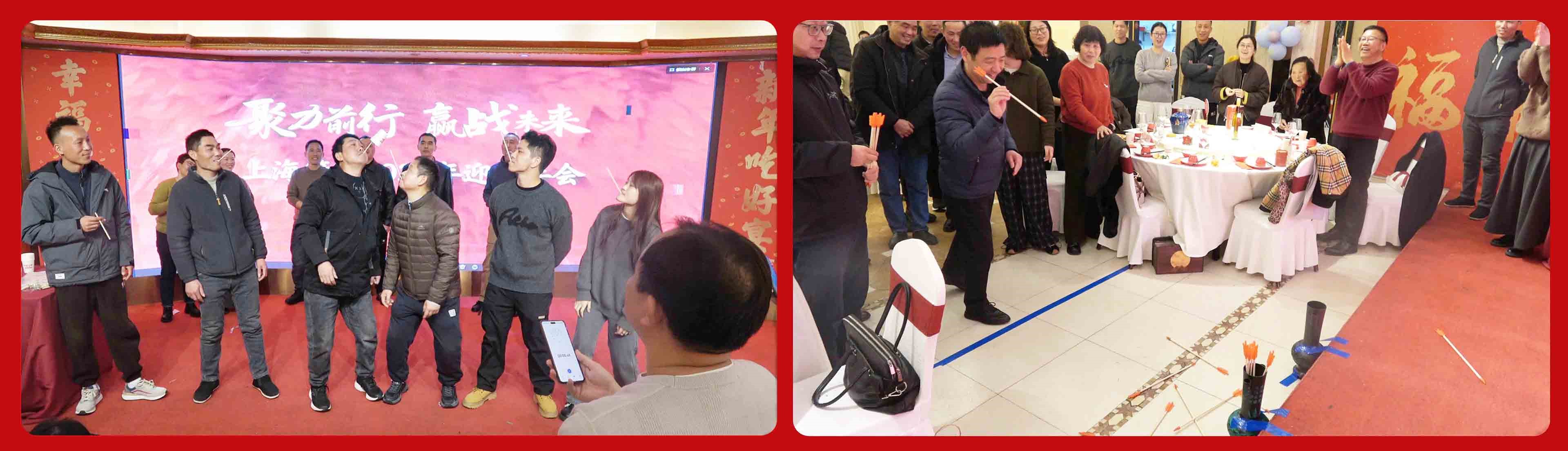 年会高潮被幸运抽奖环节点燃,丰富的奖品一一揭晓,现场欢呼不断,中奖员工喜笑颜开。特别增设的“纸杯传递”与“短箭投壶”团队游戏,既考验协作,更比拼技巧。现场气氛热烈欢快,掌声与笑声此起彼伏,团队默契与蓬勃朝气在互动中自然流淌。