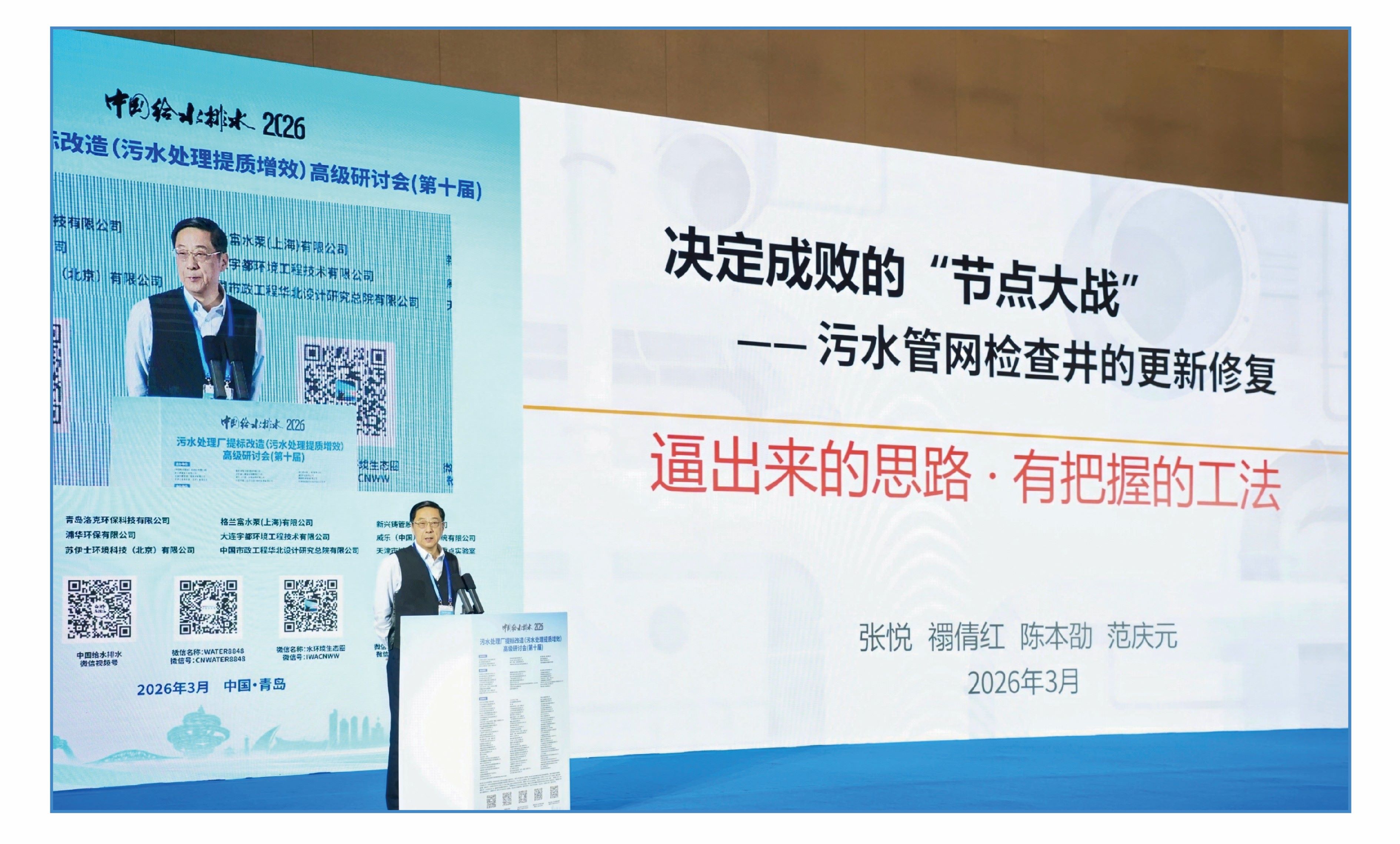 在高级研讨会上,中国土木工程学会水工业分会理事长、教授级高工张悦作了题为“决定成败的‘节点大战’— 污水管网检查井的更新修复”的主题演讲。报告聚焦污水管网运行中的关键节点—检查井,深入分析了检查井破损、渗漏等病害对管网整体效能的影响,系统介绍了检查井更新修复的新型材料、工艺技术与标准化解决方案,强调了检查井作为管网“节点”在保障污水收集系统完整性、提升城市水环境治理成效中的核心作用,为排水管网精细化运维提供了重要思路。